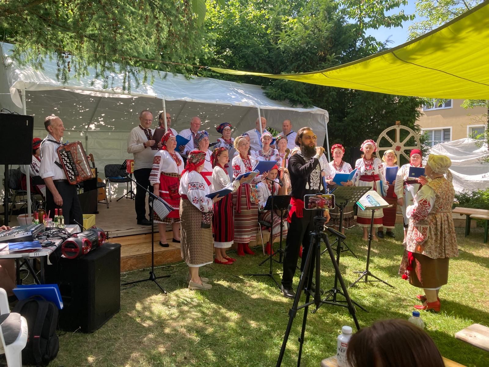„Kasharas Eleven“ tanzten einen indischen Bollywood. Gordii Danylchuk singt gemeinsam mit dem Chor „Wolja“.