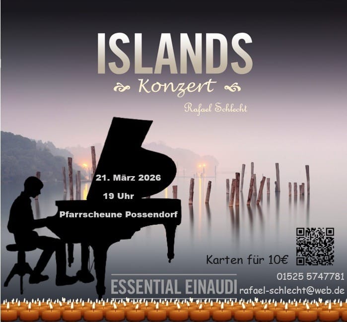 Samstag, 21.3.26 19:00 Klavierkonzert von Musikschüler Rafael Schlecht in der Pfarrscheune Possendorf